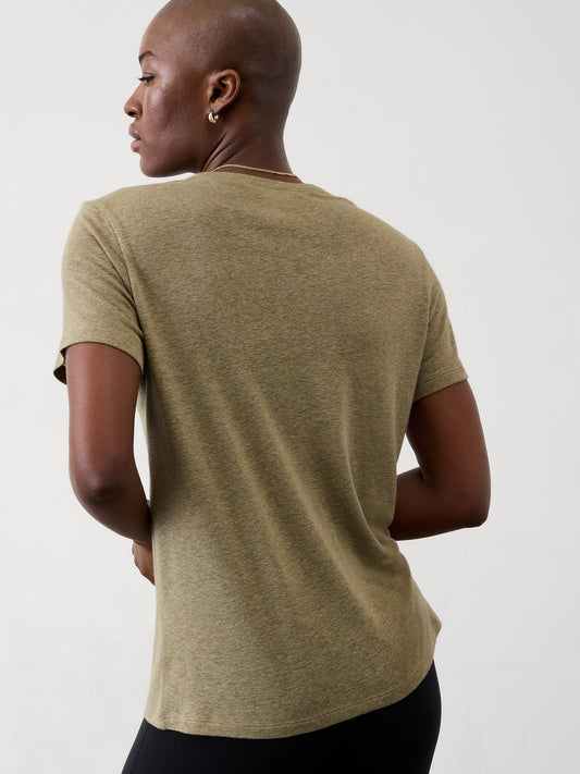 تي شيرت جيت أواي من مزيج الكتان بفتحة ياقة على شكل حرف V
