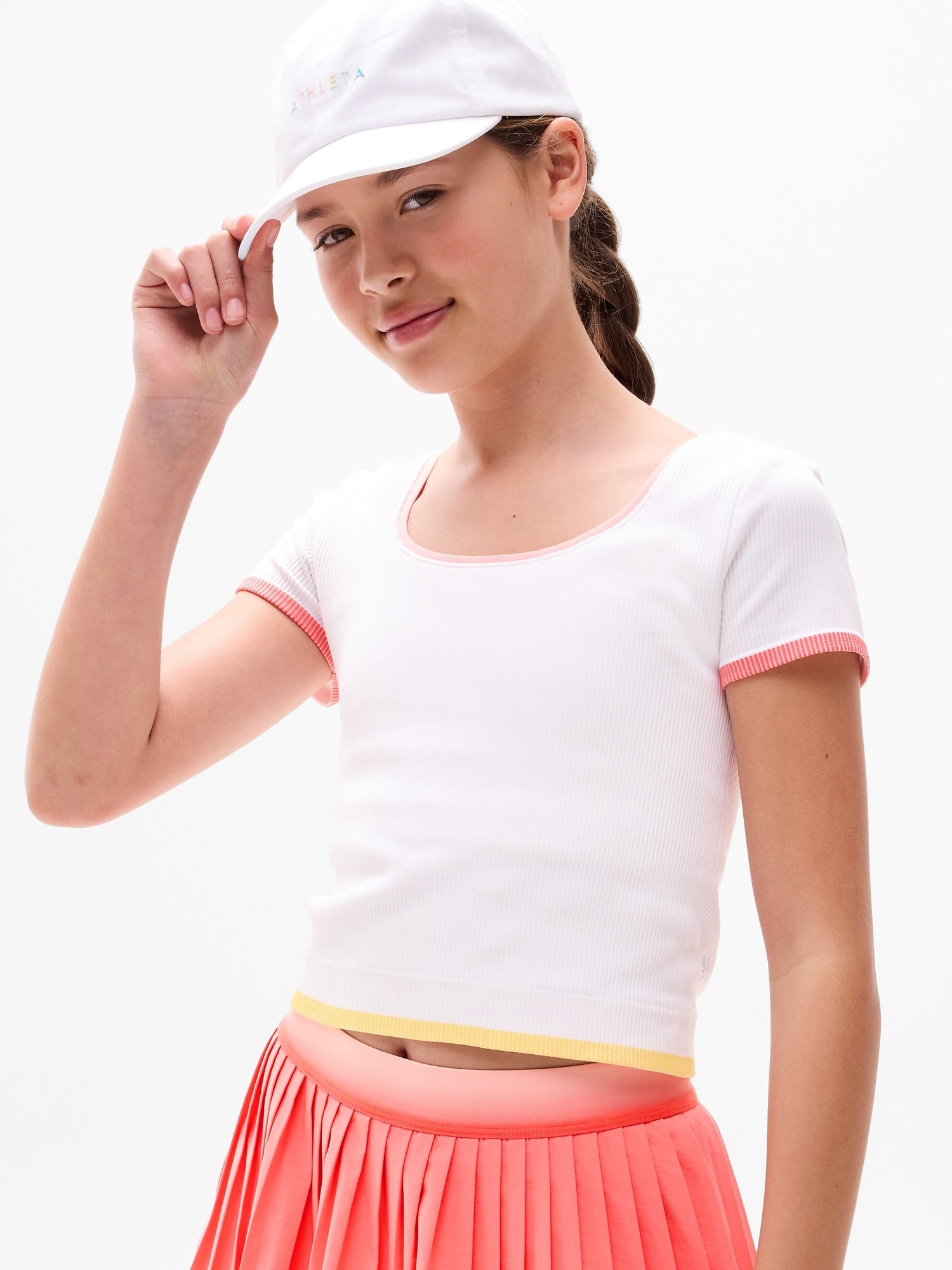 تي شيرت أثليتا جيرل قصير مضلع أعلى الخصر