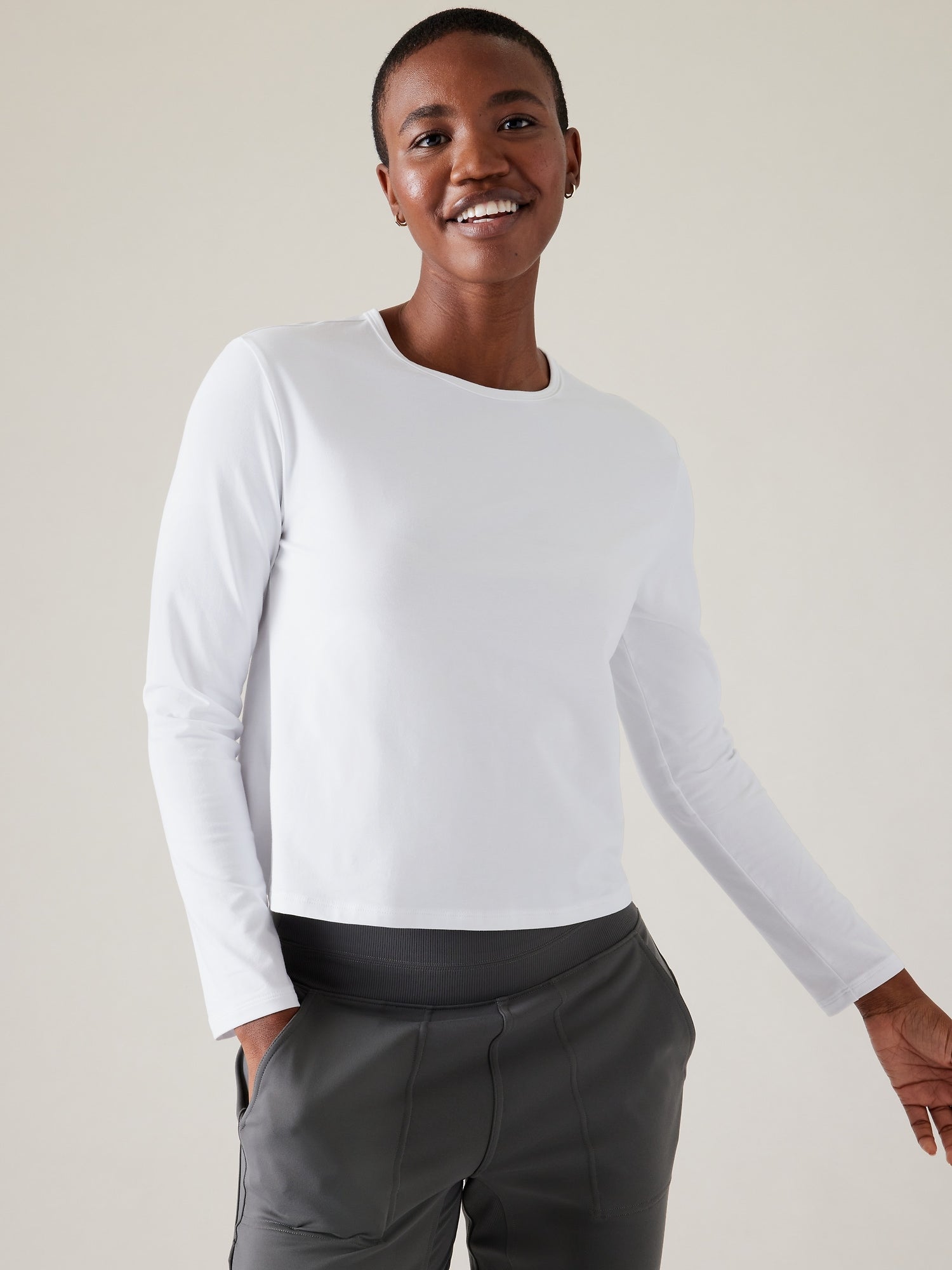 هل أكمام القميص طويلة جدًا؟ هل الكتفان فضفاضتان دائمًا؟ إذاً فأنتِ صغيرة الحجم. تقدم Athleta مقاسات Petite من أفضل أنماطنا المصممة لتناسبك تمامًا. الآن لم يعد عليكِ القلق بشأن السراويل الطويلة جدًا، أو الاضطرار إلى لف أكمام قميصك أو إجراء تعديلات بعد كل رحلة تسوق. تعتمد أحجام Petite على الطول وليس الوزن. لا تنطبق أحجام Petite فقط على النساء بطول 5'4" أو أقصر. إذا كانت أكمام قميصك أو ساقي بنطالك طويلة جدًا عادةً، فإن مجموعة Petite الخاصة بنا مصممة لك. تم تعديل كل نمط ليناسب شكل جسمك. بالإضافة إلى ذلك، يمكنك الآن ارتداء مقاسات Petite الخاصة بنا من الرأس إلى القدمين أو مجرد قمصان أو سفلي Petite، اعتمادًا على نسب جسمك. سيساعدك دليل مقاسات Petite الخاص بنا في تحديد ما إذا كان يجب عليك ارتداء مقاسات Petite. ما عليك سوى القياس والتحقق من جداول المقاسات.