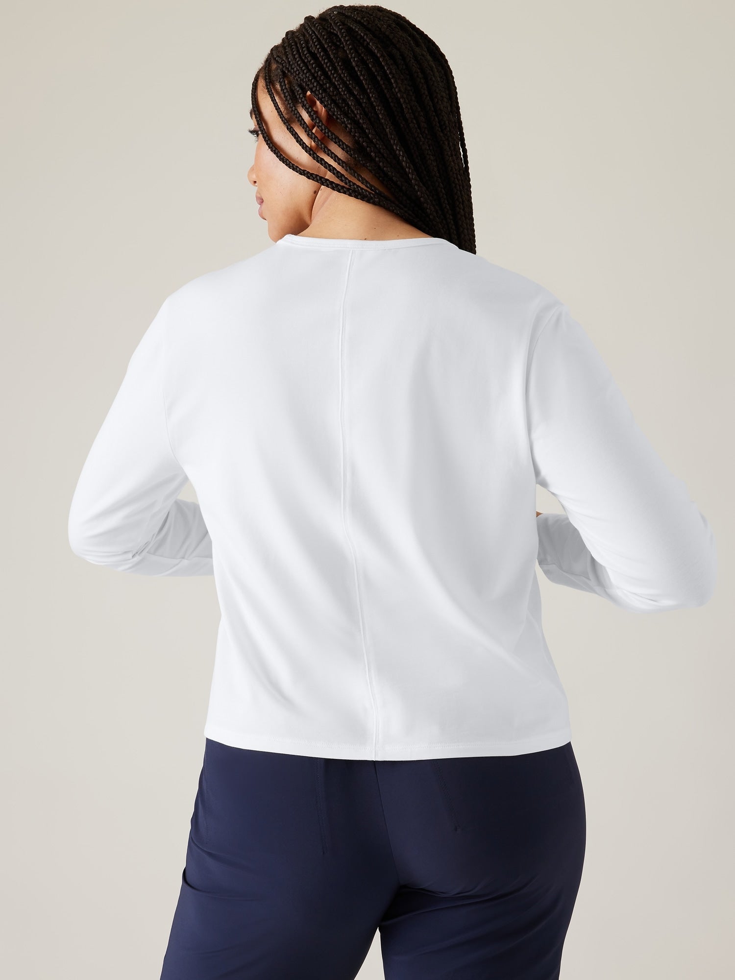 فساتين وتنانير قصيرة جدًا؟ لا تبقى حواف الملابطوية أبدًا؟ إذاً فأنتِ طويلة القامة. تقدم Athleta مقاسات طويلة للنساء من أفضل أنماطنا المصممة لتناسبك تمامًا. الآن لم يعد عليكِ القلق بشأن السراويل القصيرة جدًا أو أكمام القميص غير الطويلة بما يكفي أو التعديلات بعد كل رحلة تسوق. تعتمد المقاسات الطويلة على الطول وليس الوزن. لا تنطبق المقاسات الطويلة فقط على النساء بطول 5 أقدام و11 بوصة أو أطول. إذا كانت أكمام قميصك أو ساقي البنطال قصيرتين دائمًا، فإن مجموعة المقاسات الطويلة لدينا مصممة لك أيضًا. تم تعديل كل نمط ليناسب شكل جسمك. بالإضافة إلى ذلك، يمكنك الآن ارتداء مقاساتنا الطويلة من الرأس إلى القدمين أو فقط توب أو سفلي طويلة، اعتمادًا على نسب جسمك. سيساعدك دليل المقاسات الطويلة لدينا في تحديد ما إذا كان يجب عليك ارتداء مقاسات طويلة. ما عليك سوى القياس والتحقق من جداول المقاسات.