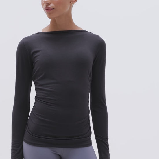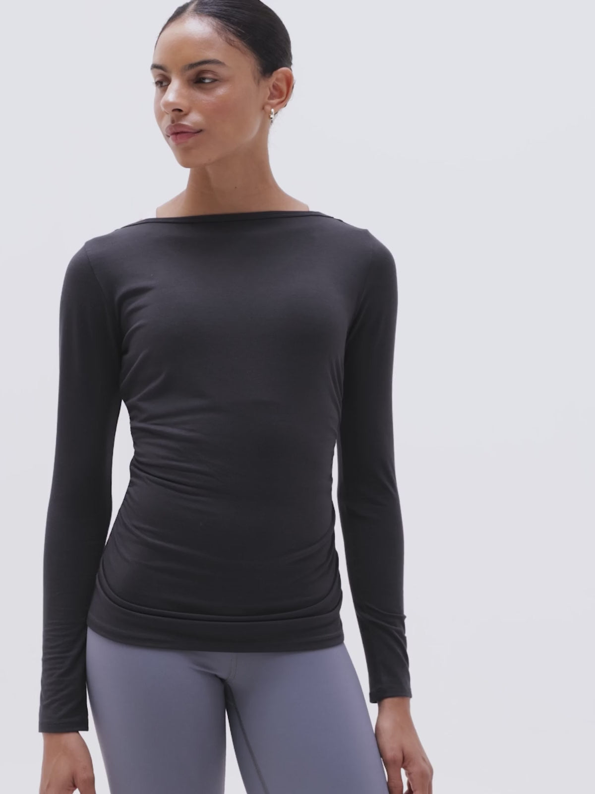 • FAVE: Your favorite studio top, modernized for more ease. Same premium-weight fabric, now with added front coverage and a minimal, clean back seam.