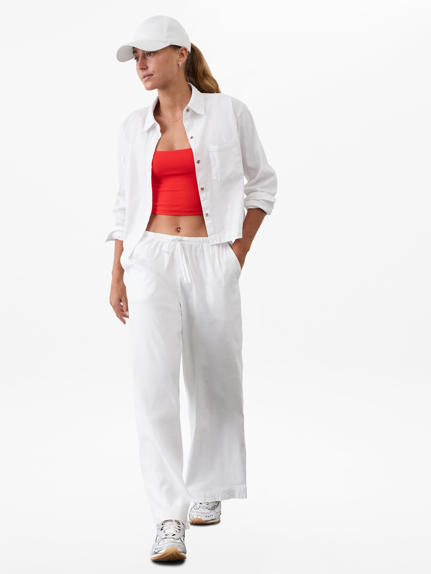 - 57% EUROPEAN FLAXâ„¢ Linen/41% LENZINGâ„¢ ECOVEROâ„¢ Rayon/2% Spandex