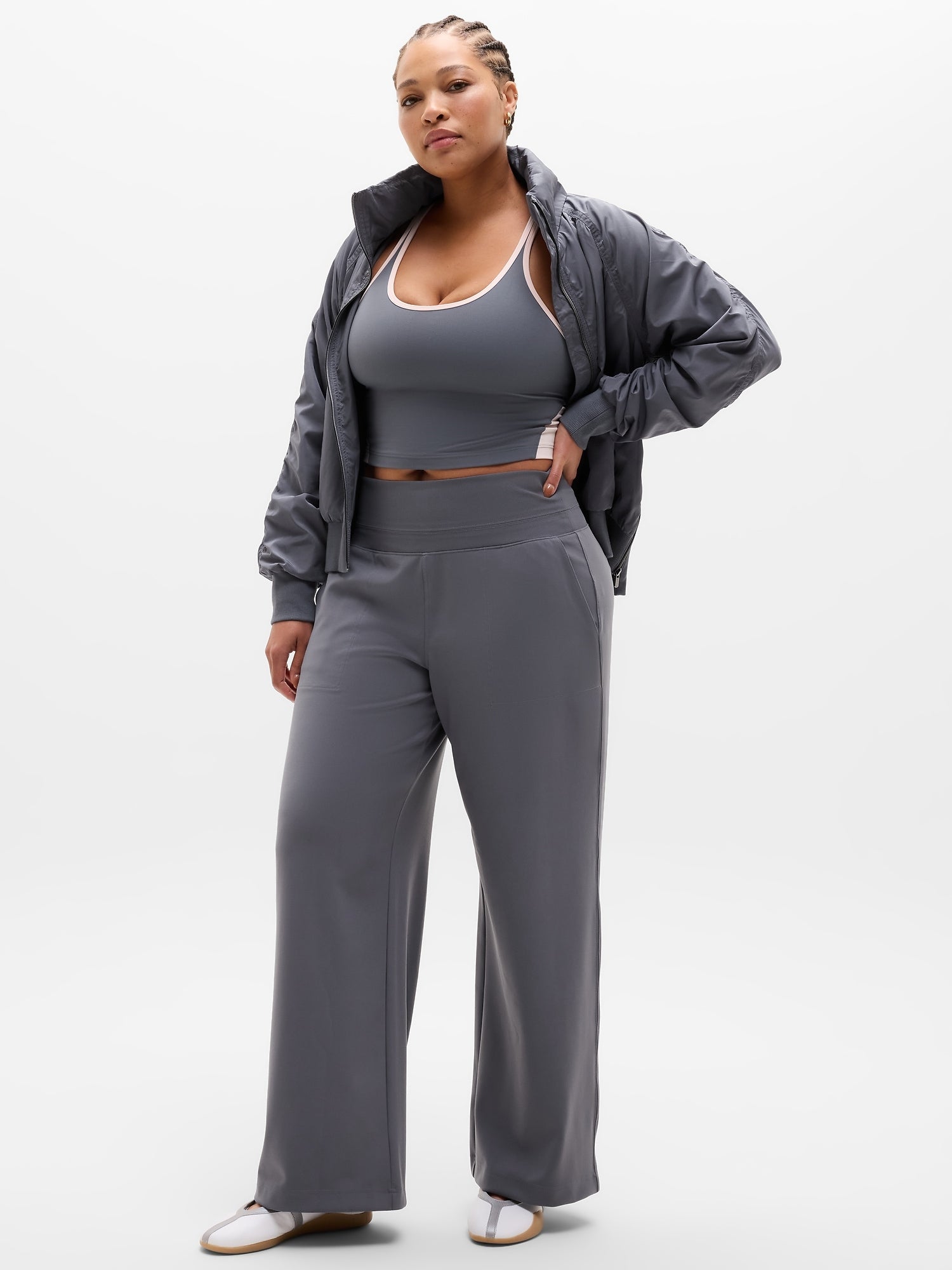 • Semi-fitted, skims easily over the body with a high-rise waistband